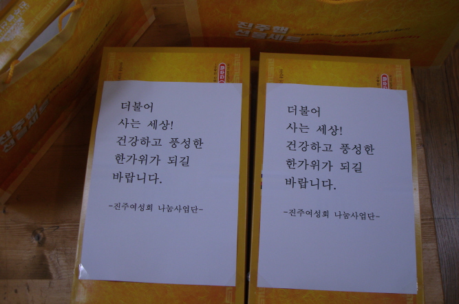 ÁøÁÖ¿©¼ºÈ¸ ³ª´®»ç¾÷´Ü¿¡¼ ÁغñÇÑ ÂüÄ¡¼±¹°¼ÂÆ®¸¦ ¸íÀý ¼±¹°·Î Á¶¼Õ°¡Á¤ ¾ÆÀ̵鿡°Ô Àü´Þ µÇ¾ú½À´Ï´Ù. ÁøÁÖ¿©¼ºÈ¸°¡ ÀüÇÏ´Â ¸¶À½Ã³·³ ¾ÆÀ̵éÀÌ Àß ¸Ô°í °Ç°ÇÏ°Ô Àß ÀÚ¶ó±â¸¦ ¹Ù¶ø´Ï´Ù~!