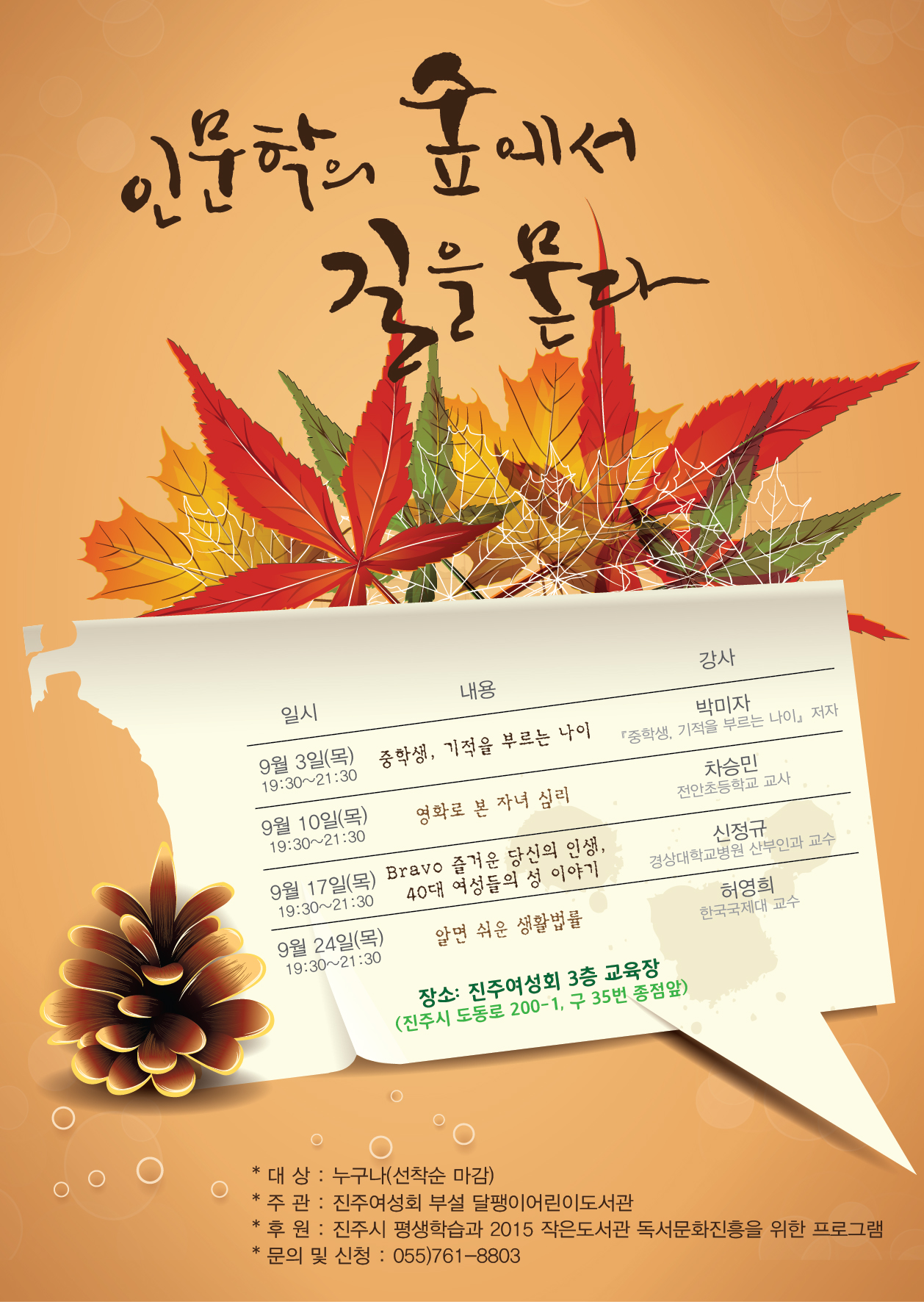* Àå¼Ò : ÁøÁÖ¿©¼ºÈ¸ 3Ãþ ±³À°Àå